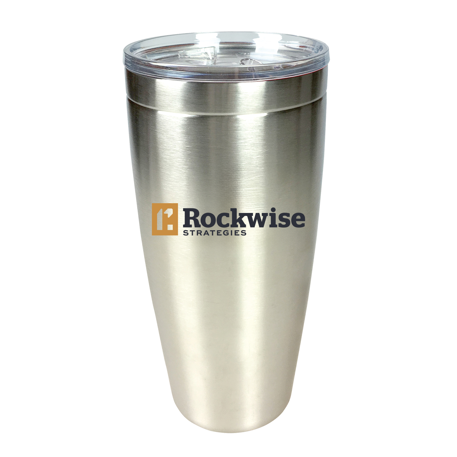 Double wall vacuum stainless steel tumbler with copper lining and press-in, drink-thru lid. Keep liquid hot for 5.5 hours and cold for 24 hours. 7.25” h, 30 oz. Loeffler logo digitally printed on front.