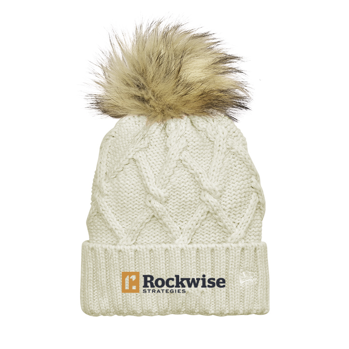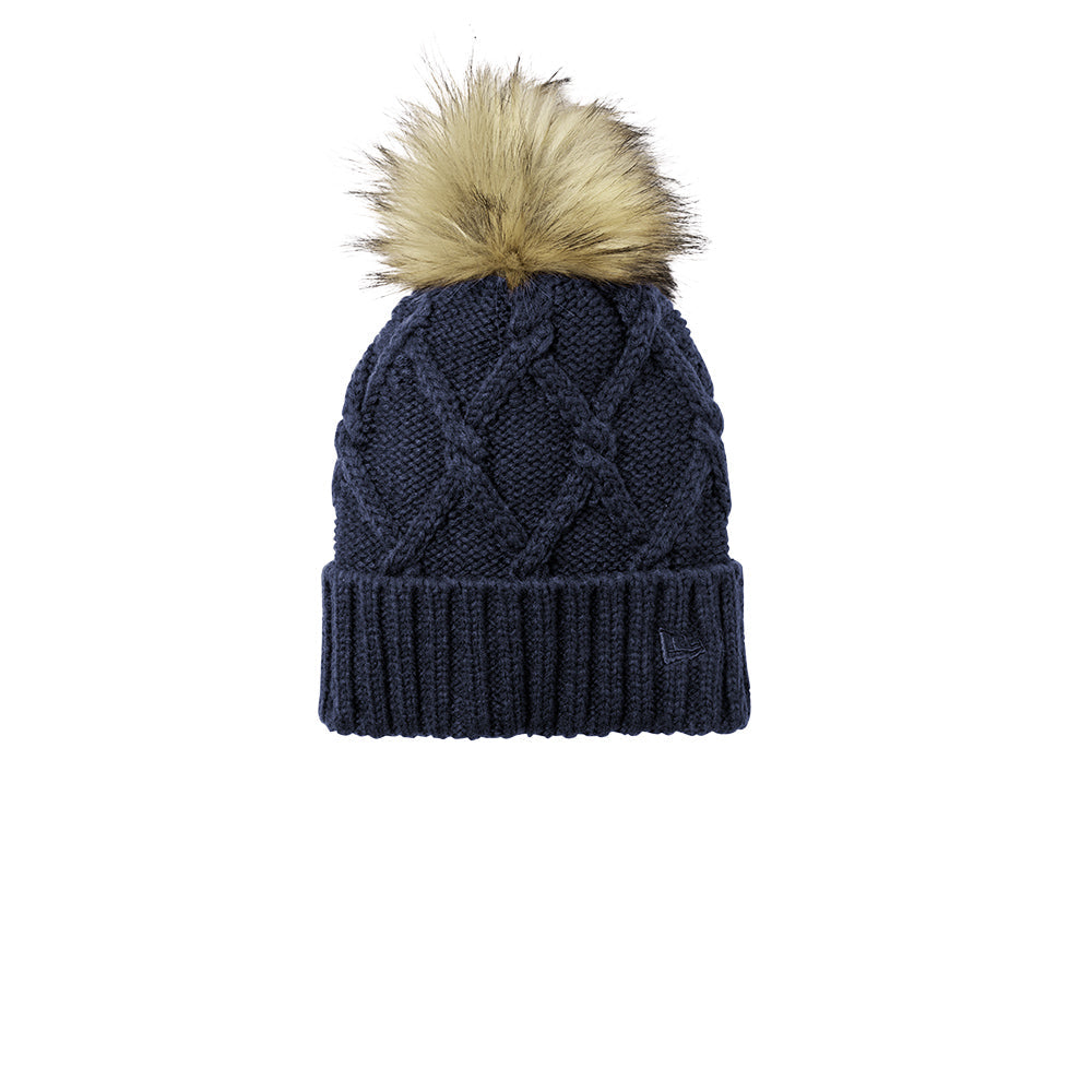 Totally on-trend, this ladies beanie has a thick ribbed cuff and a cable knit crown that’s topped off by a fun faux fur pom.